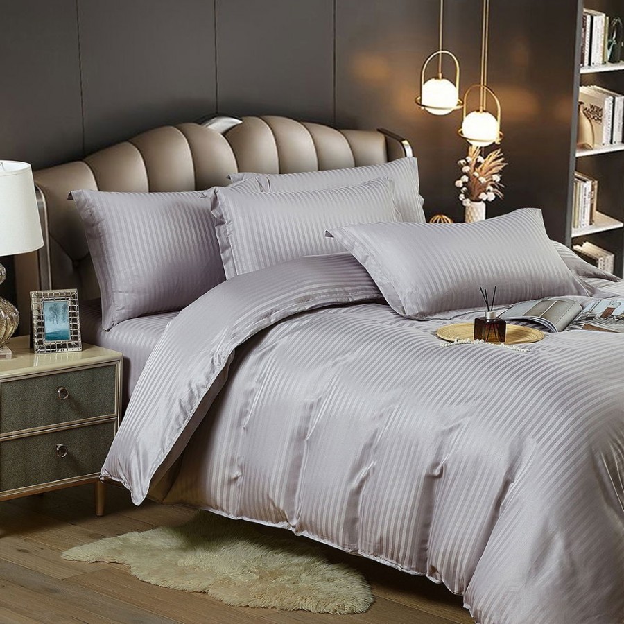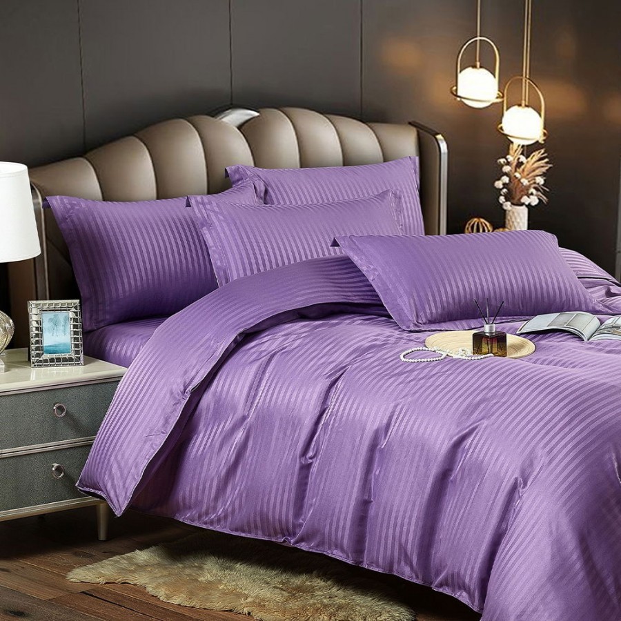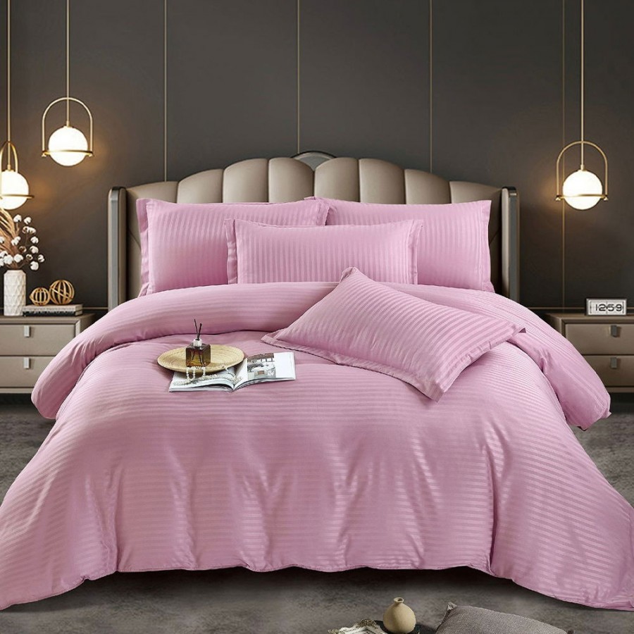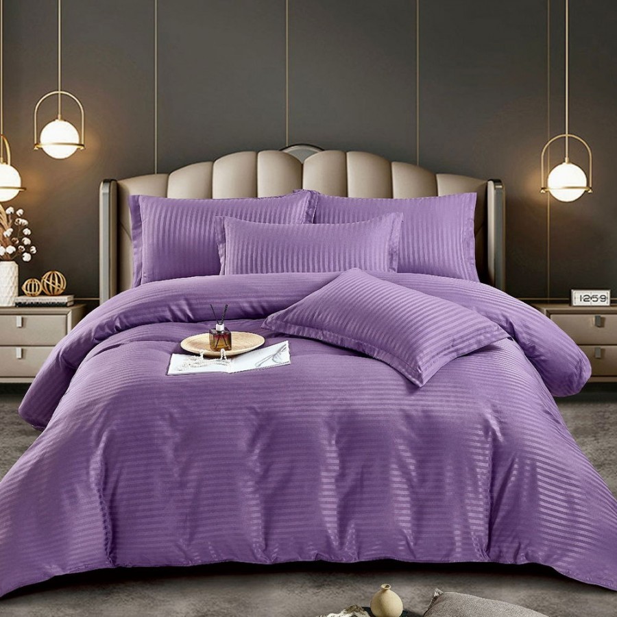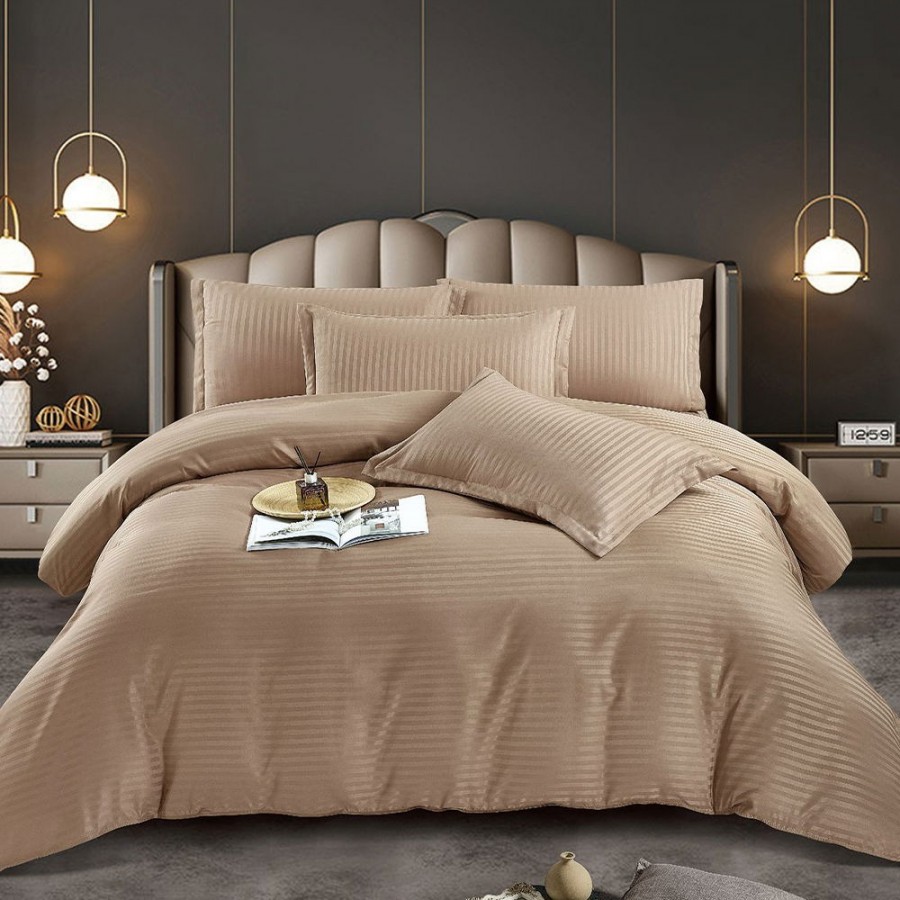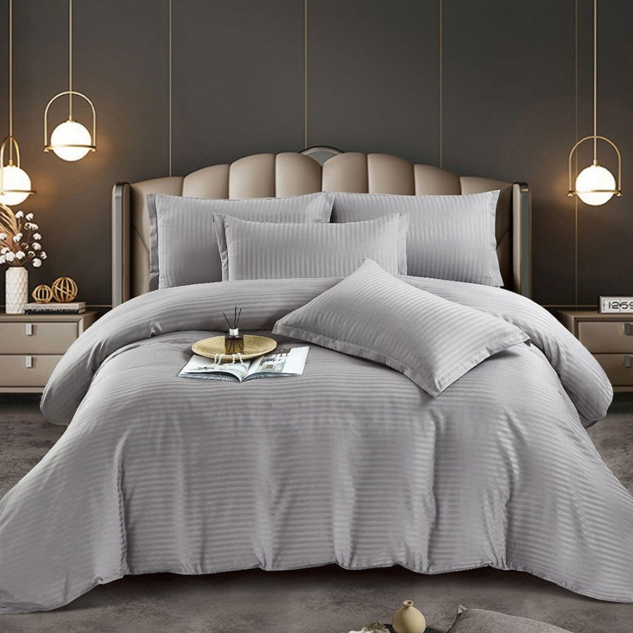 Set lenjerie pentru pat din colectia Damasc, din 6 piese. Setul contine doua cearceafuri ( pilota/plapuma si pat ) si patru fete de perna. Confectionate din bumbac de calitate superioara, lenjeriile sunt strabatute de dungulite fine de matase. Simplitatea lenjeriilor din colectia Damasc vor oferi un plus de eleganta casei tale.