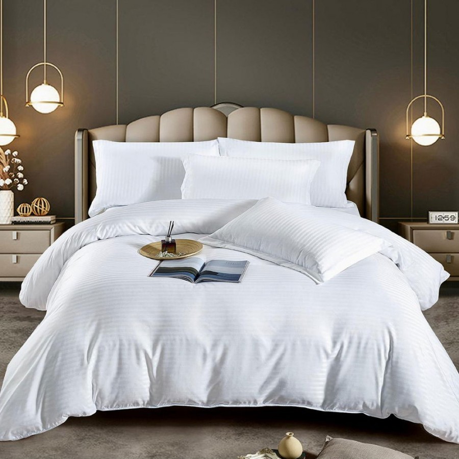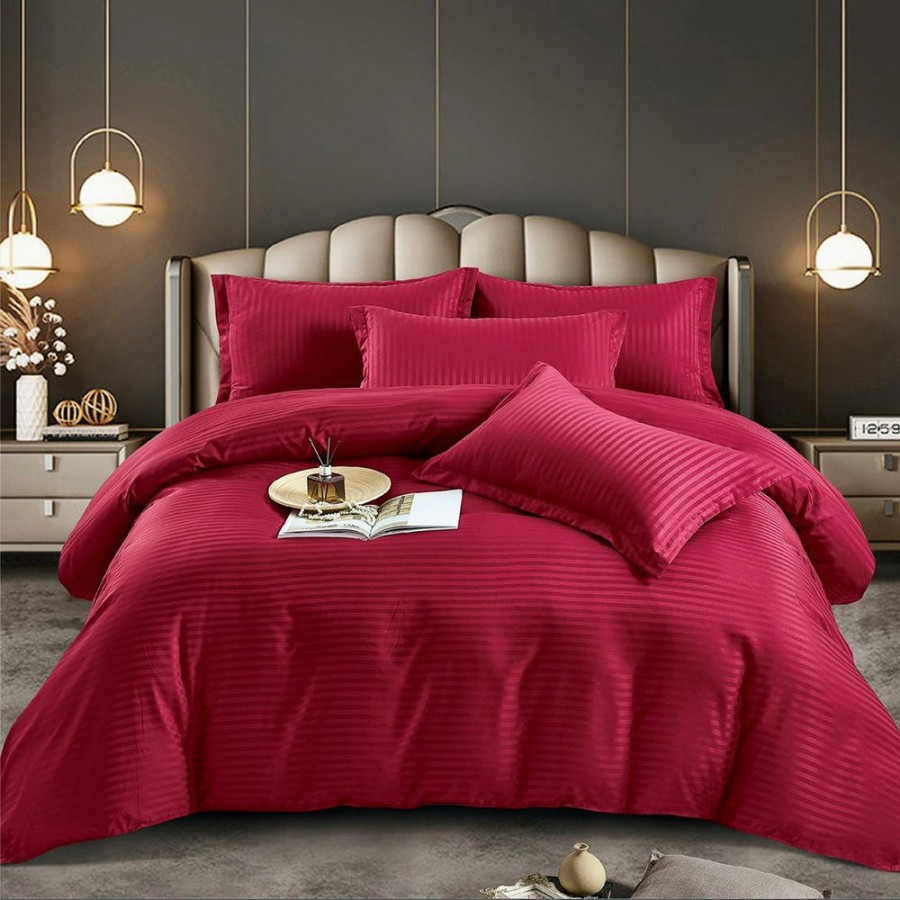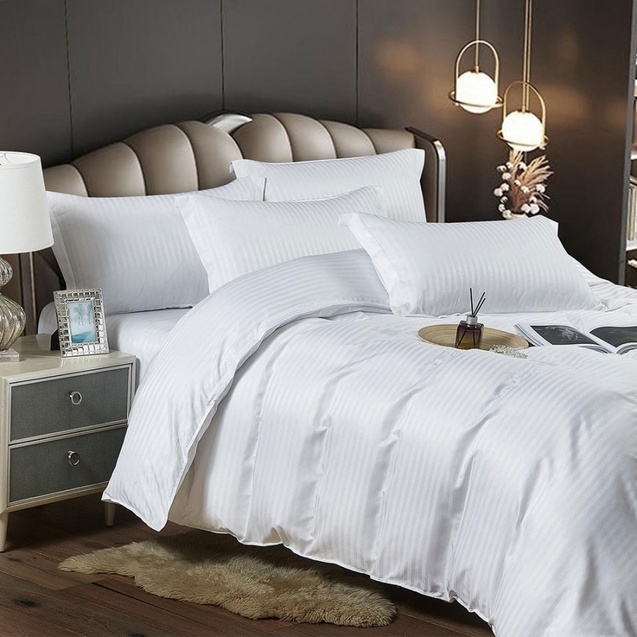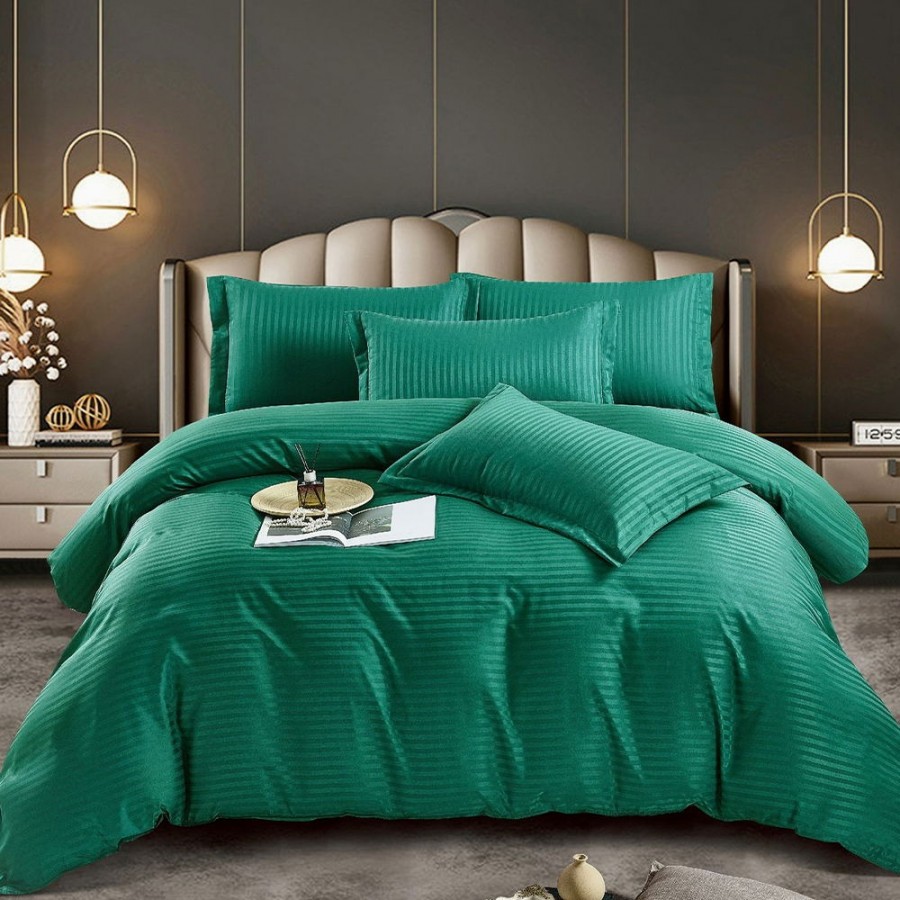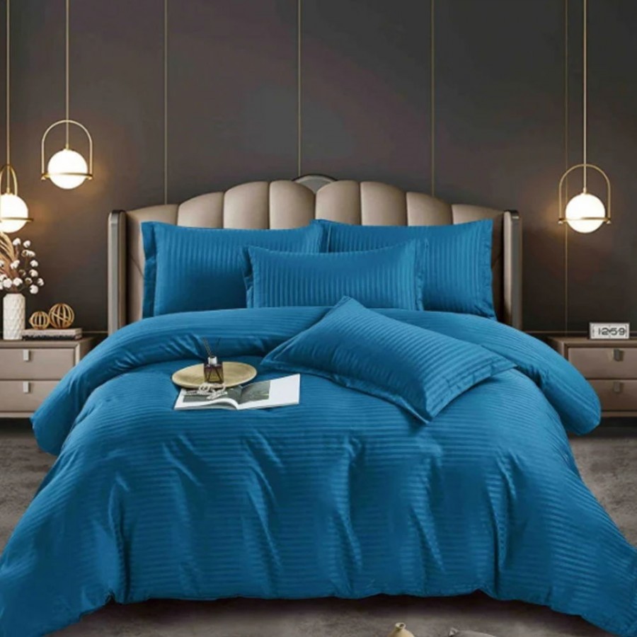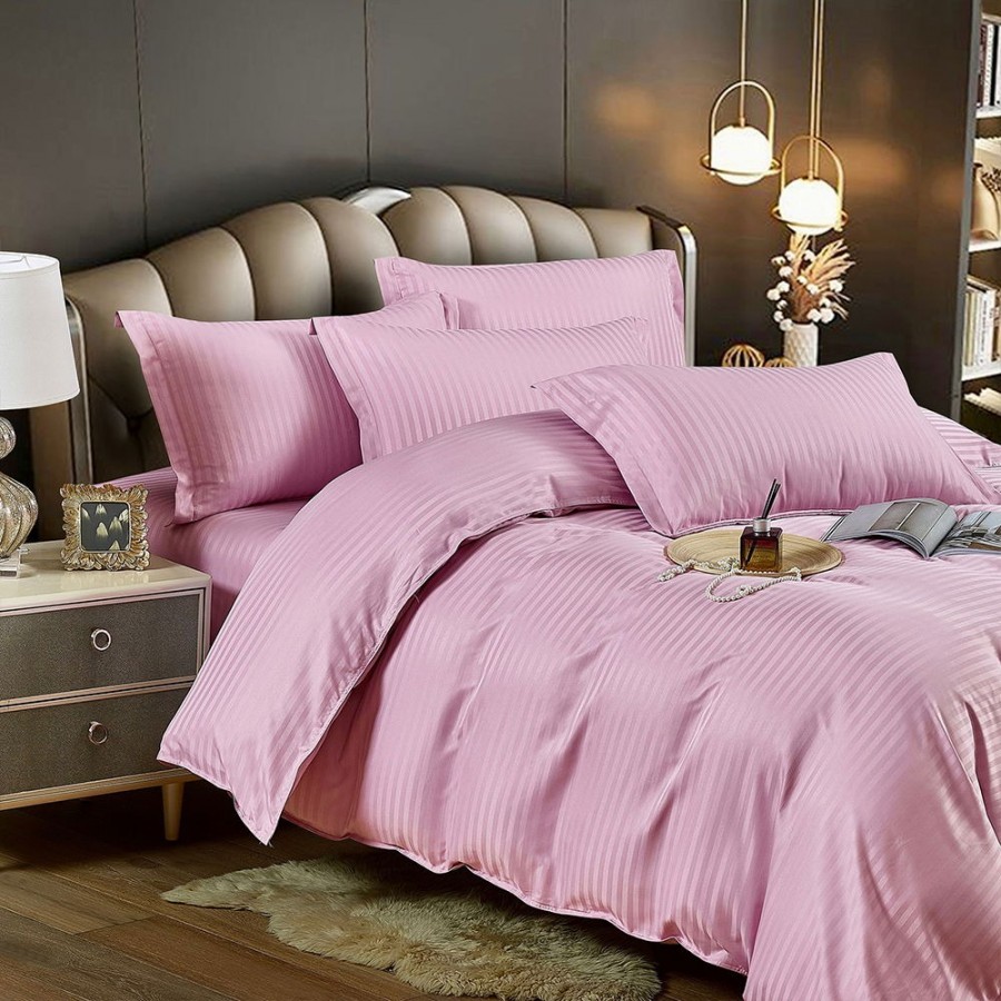 Set lenjerie pentru pat din colectia Damasc, din 6 piese. Setul contine doua cearceafuri ( pilota/plapuma si pat ) si patru fete de perna. Confectionate din bumbac de calitate superioara, lenjeriile sunt strabatute de dungulite fine de matase. Simplitatea lenjeriilor din colectia Damasc vor oferi un plus de eleganta casei tale.